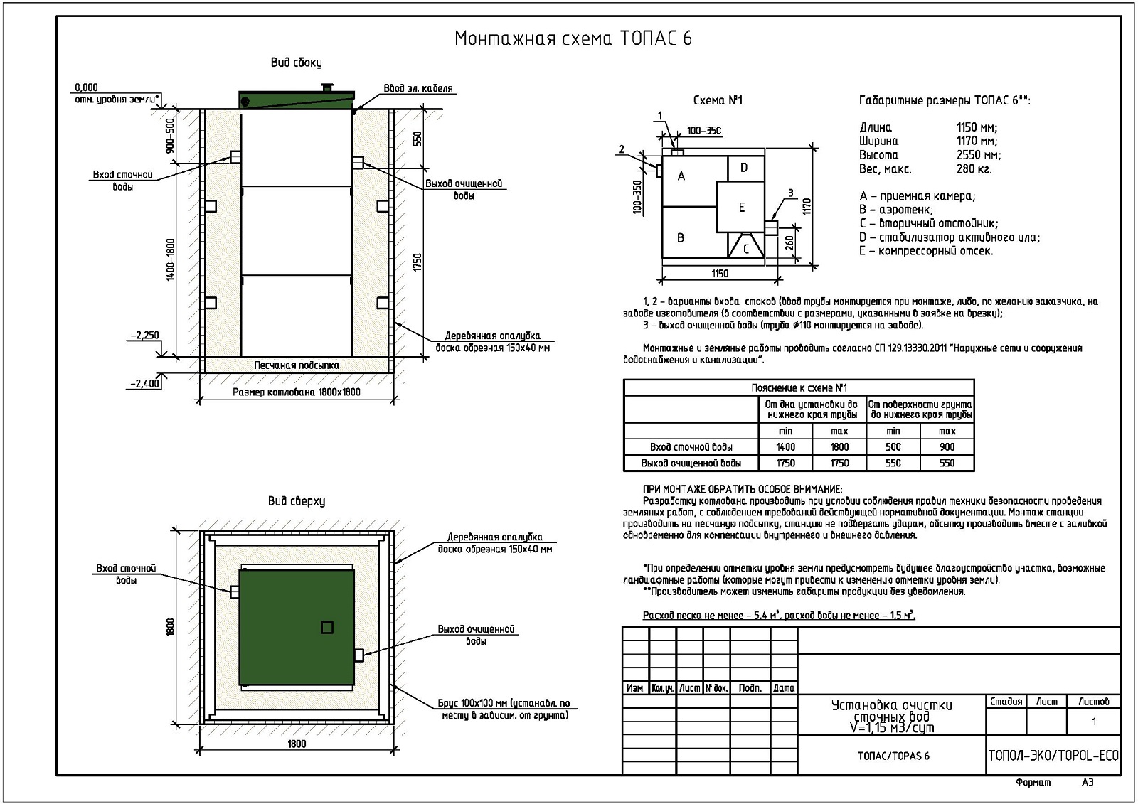 | Способ отвода очищенной воды | Самотечный |